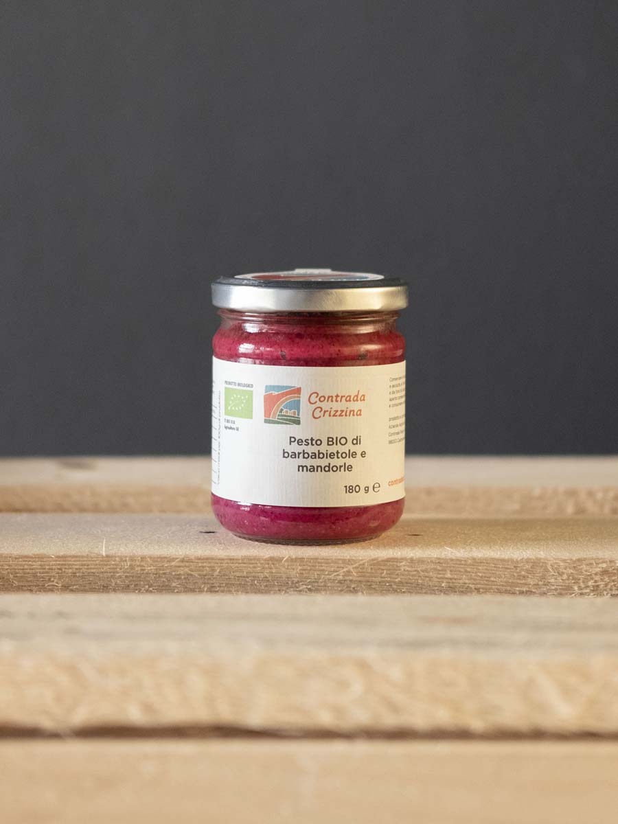 Il Pesto di barbabietola, porro e mandorle di Contrada Crizzina è prodotto con attenzione artigianale tra i boschi di Castroreale, nel cuore pulsante dei Nebrodi. Per la sua produzione vengono usati solo ingredienti di alta qualità per garantire un gusto autentico e genuino